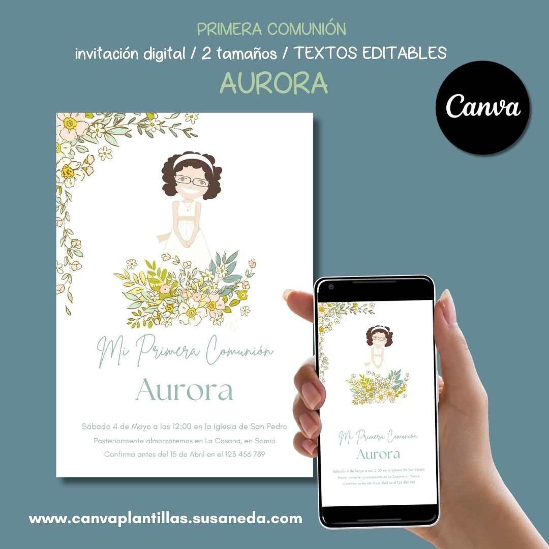 Sé el primero en valorar “Aurora invitación Comunión editable en CANVA”